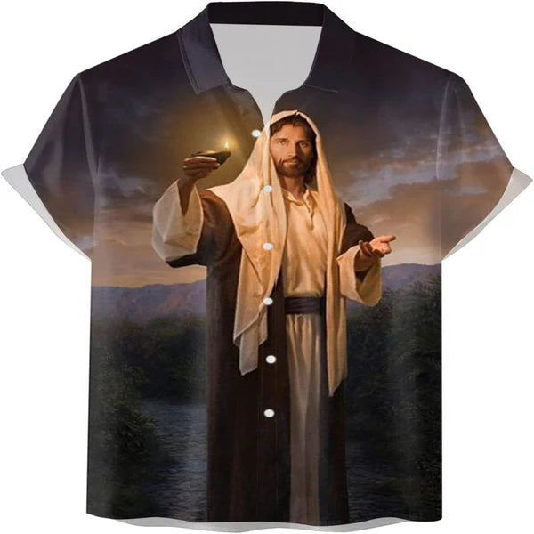 UniJames Jesus Holding Light Christian Hawaiian Shirt - Hawaiian Beach Shirts for Men Women