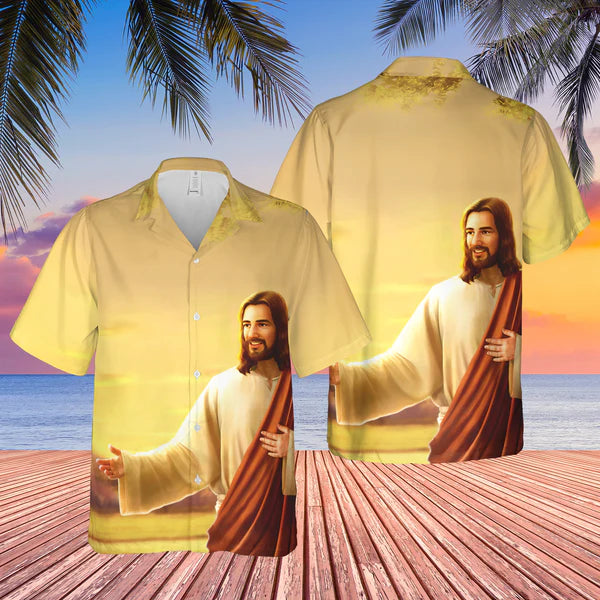 UniJames Jesus Smile Christian Hawaiian Shirt - Hawaiian Beach Shirts for Men Women