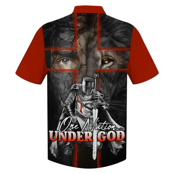 UniJames Lion And Warrior One Nation Under God Hawaiian Shirt - Best Hawaiian Shirts - Christian Hawaiian Shirt