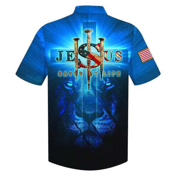 UniJames Lion Jesus Saved My Life Hawaiian Shirt - Best Hawaiian Shirts - Christian Hawaiian Shirt