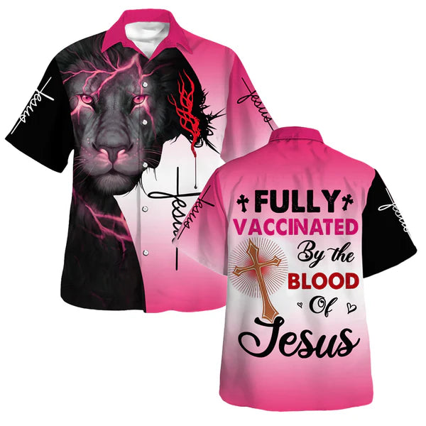 UniJames Lion Pink Fully Vaccinated By The Blood Of Jesus Hawaiian Shirt - Christian Hawaiian Shirt - Religious Hawaiian Shirts