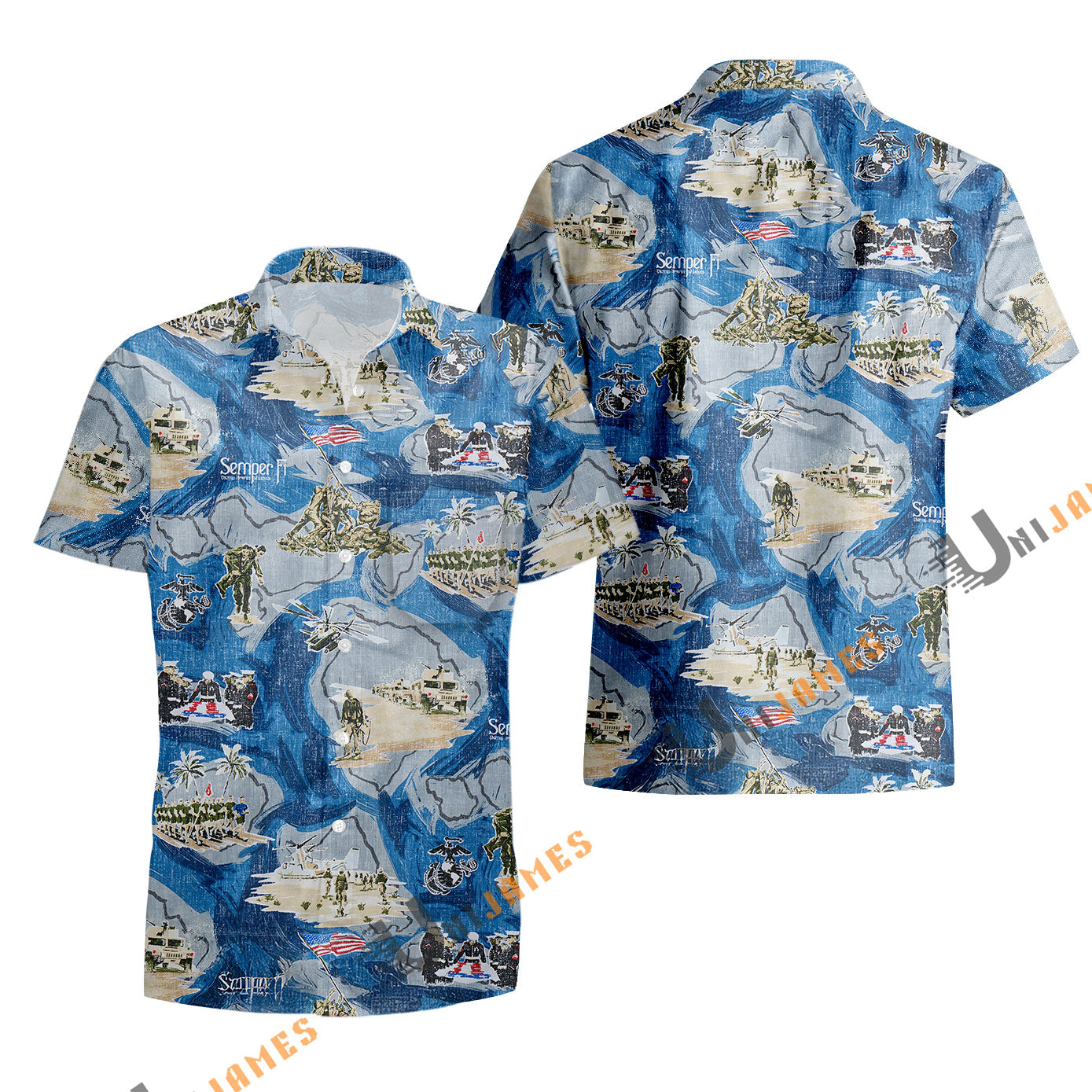 UniJames MARINES: SEMPER FI Short Sleeve Button Shirt For Men