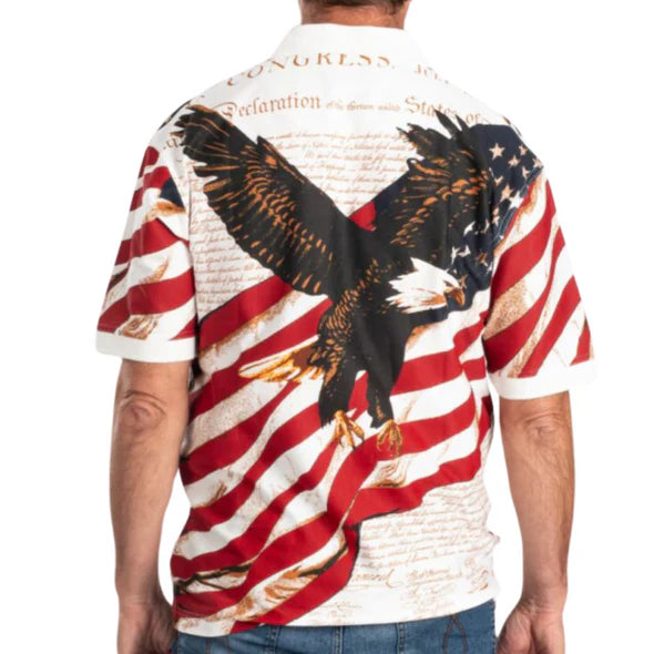 UniJames Men's Eagle Soaring American Flag Cotton Polo Shirt