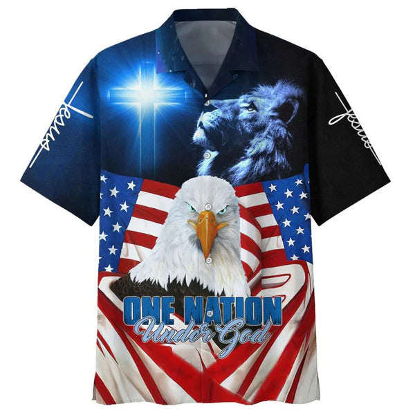 UniJames One Nation Under God American Eagle Hawaiian Shirt - Best Hawaiian Shirts - Christian Hawaiian Shirt