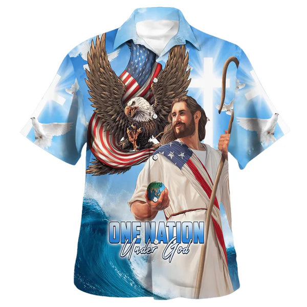UniJames One Nation Under God Jesus Eagle American Hawaiian Shirt - Christian Hawaiian Shirt - Religious Hawaiian Shirts
