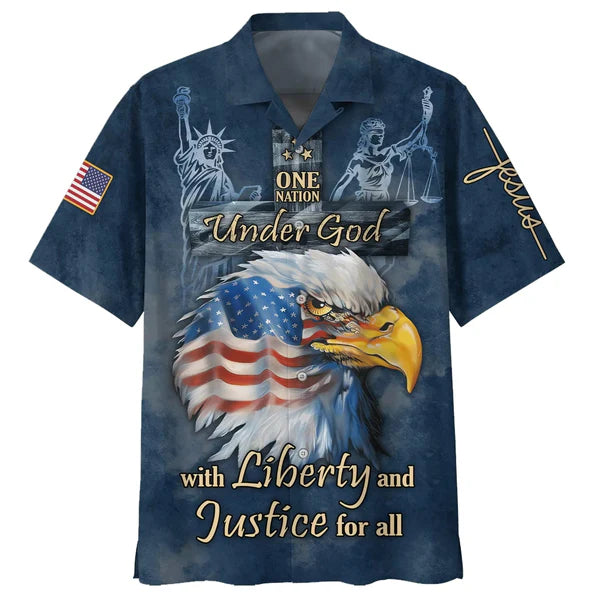 UniJames One Nation Under God With Liberty And Justice Hawaiian Shirts - Christian Hawaiian Shirt - Hawaiian Summer Shirts