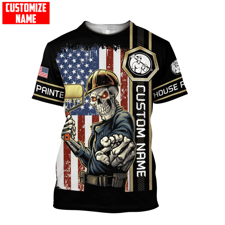 UniJames Personalized Name American Painter Unisex Shirts Skull