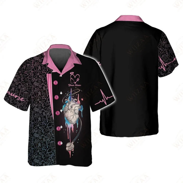 Available in multiple styles like T-shirt, Polo shirt, Hawaiian shirt and Hoodie, there’s a look for every personality and shift schedule. Add your name, title, or department for a personalized touch that truly stands out.