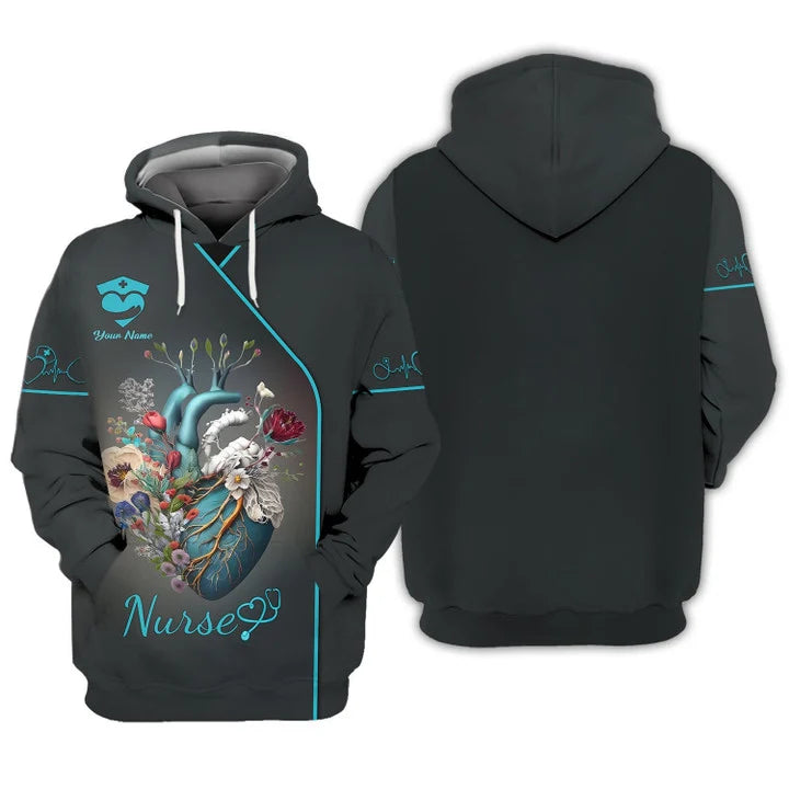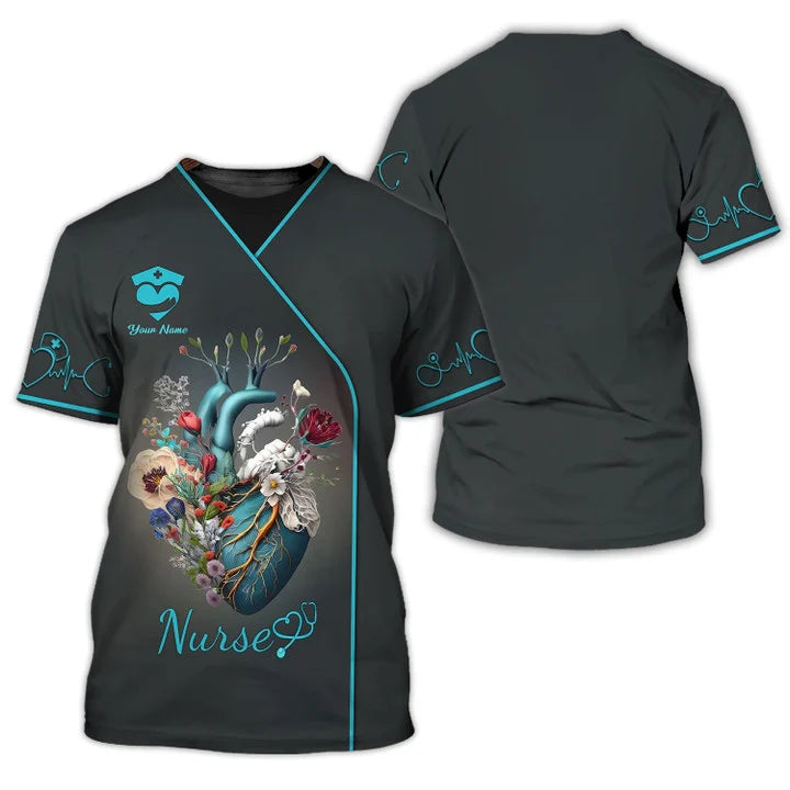 UniJames Personalized Nurse Shirt - Artistic Anatomy and Floral Design for Healthcare Professionals
