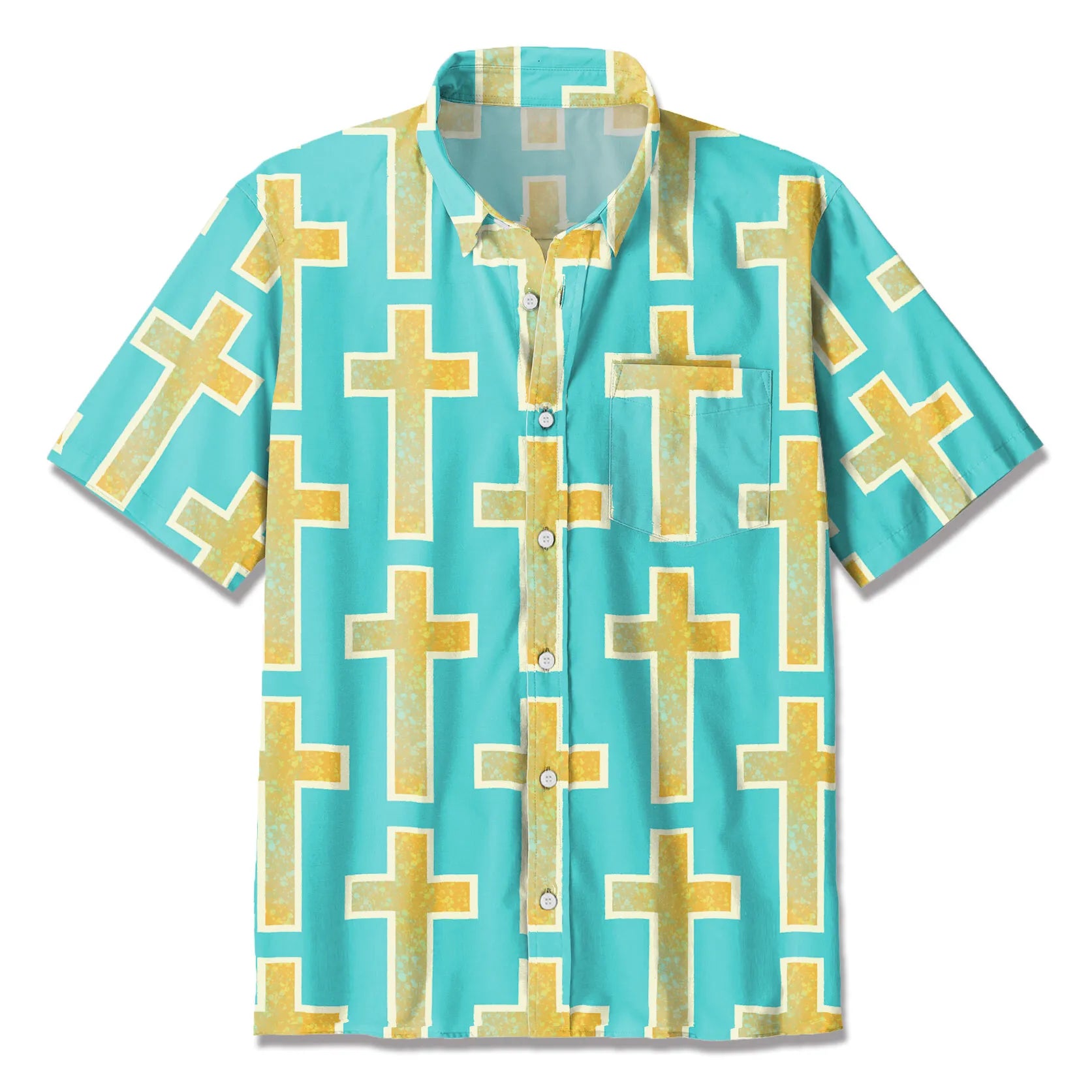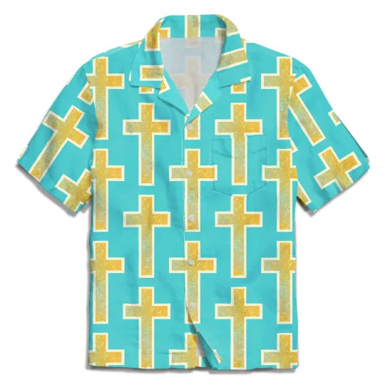 UniJames The Blueish Green Cross Christian Hawaiian Shirt