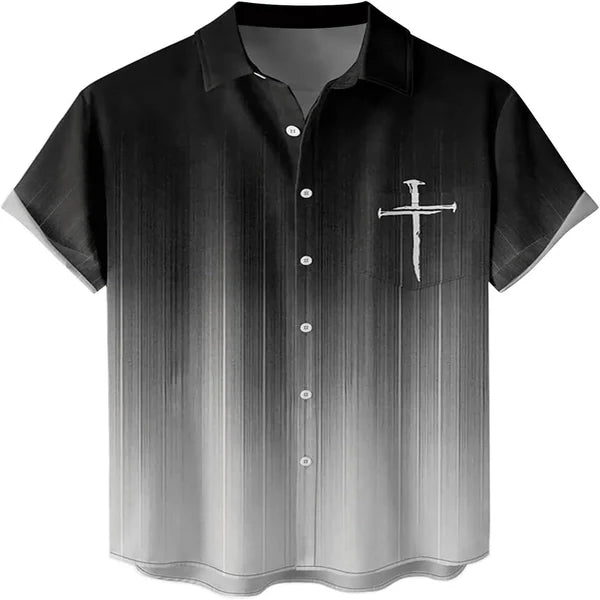 UniJames The Cross Black Color Christian Hawaiian Shirt - Hawaiian Beach Shirts for Men Women