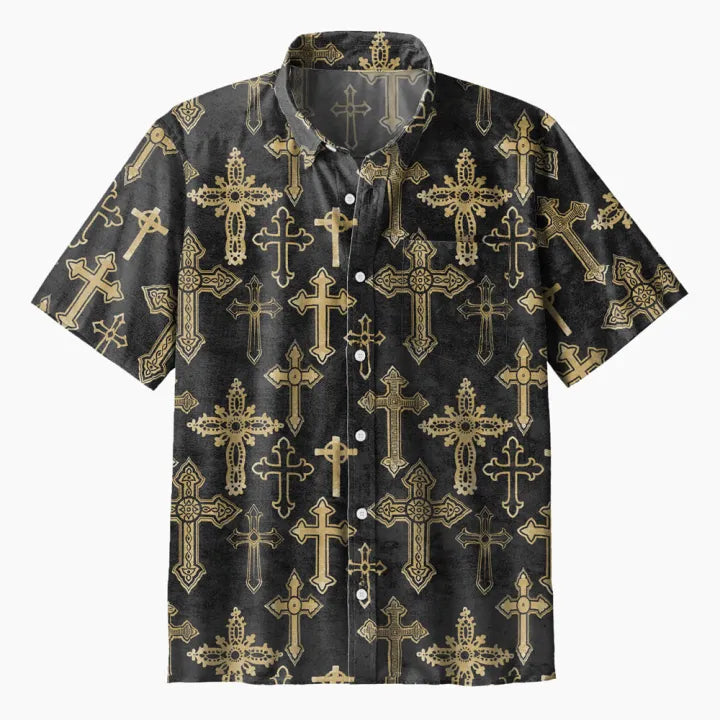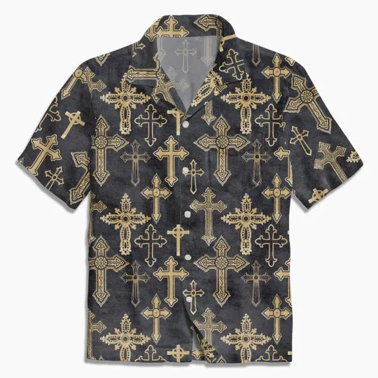 UniJames Vintage Black Cross Christian Hawaiian Shirt