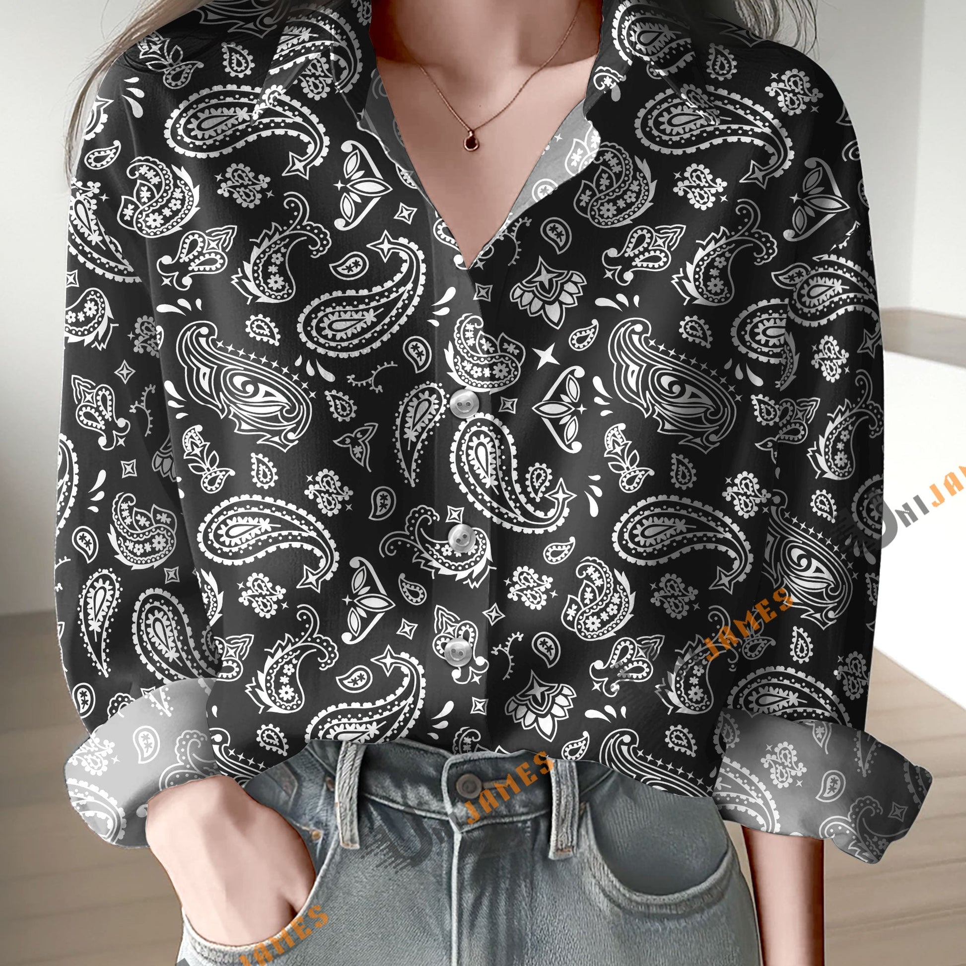 Unique Black Paisley Bandana Pattern Casual Shirt