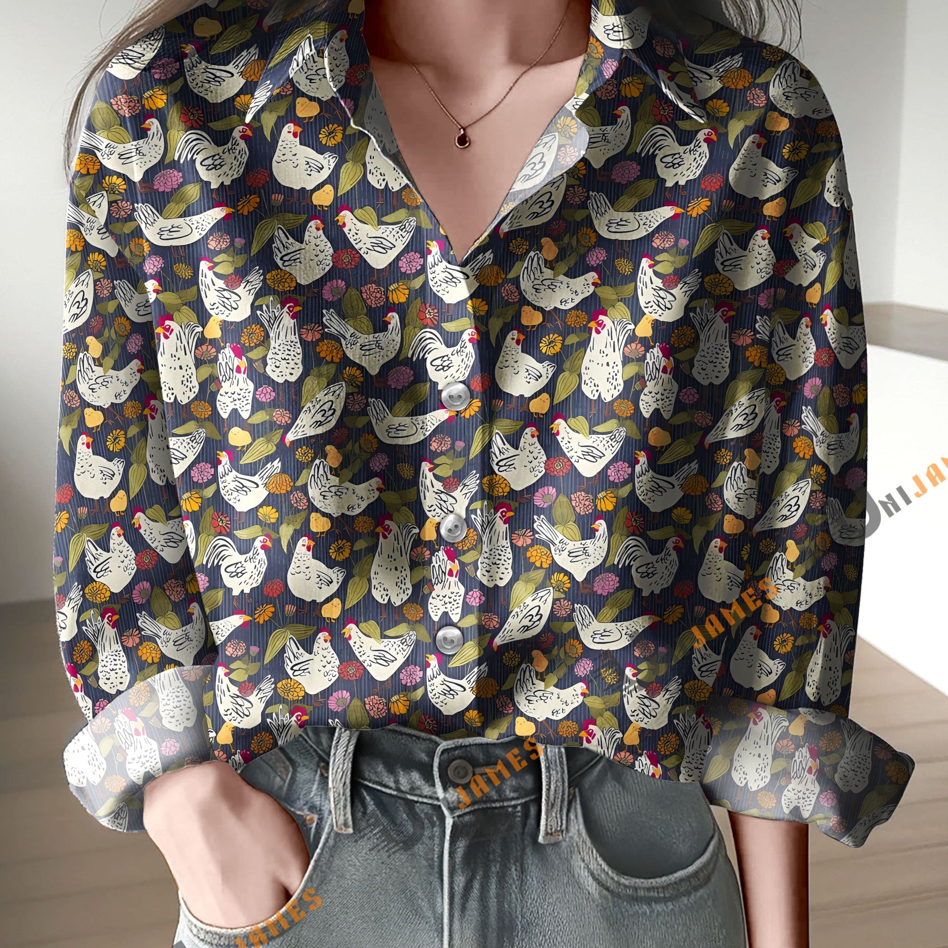 Unique Chicken Coop Dark Blue Pattern Casual Shirt
