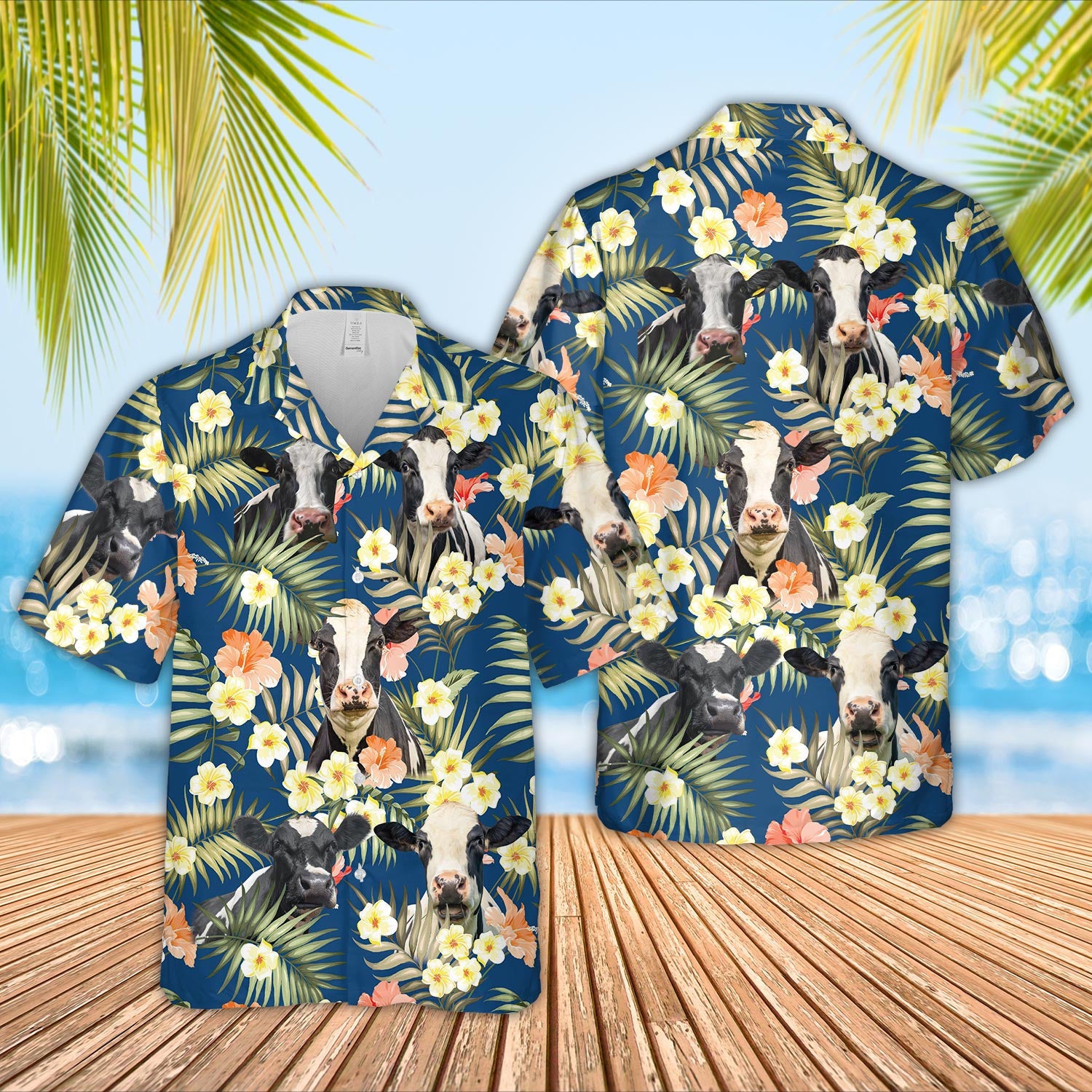 Unique Holstein Summer Blue Floral 3D Hawaiian Shirt