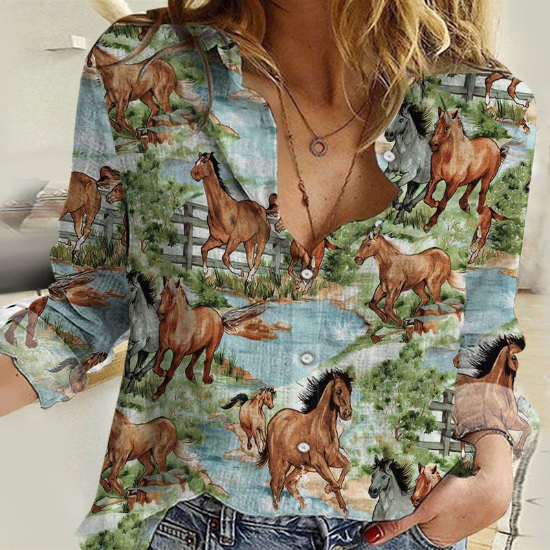 Unique Horses running on vitage land All Printed 3D Casual Shirt