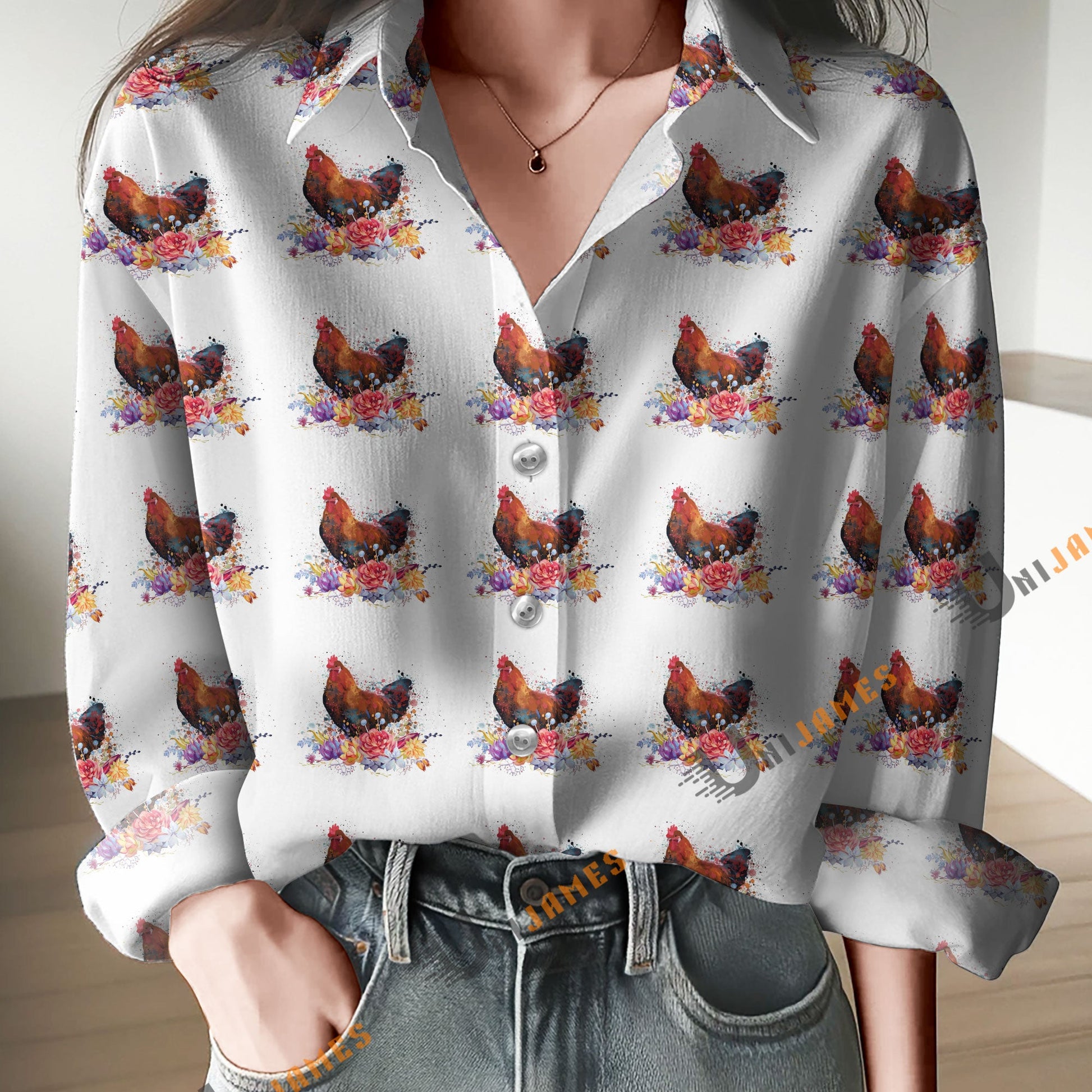 Unique Watercolor Rooster With Flowers Casual Shirt