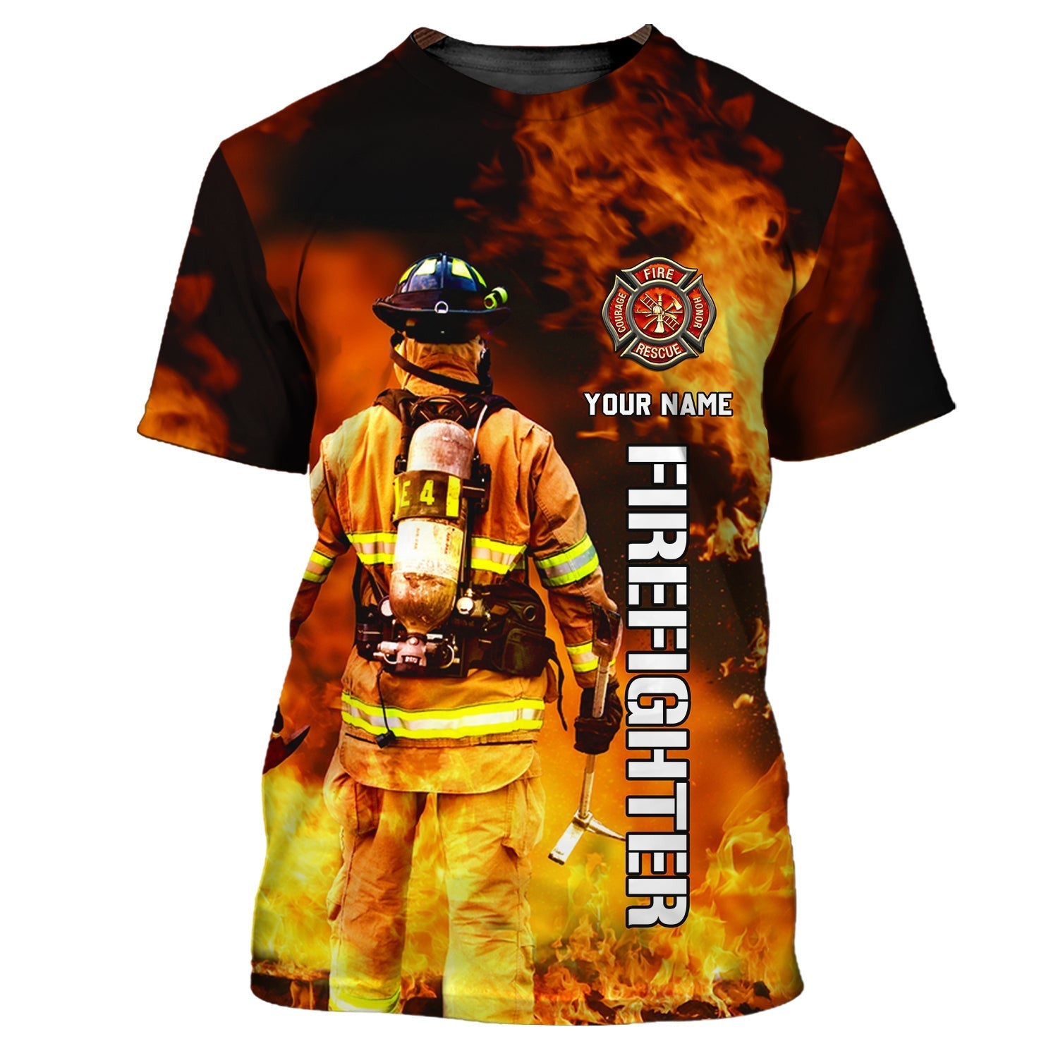 UniJames Unisex Shirt - Custom Name T-Shirt - Personalized Firefighter Shirt - Gift For Fireman